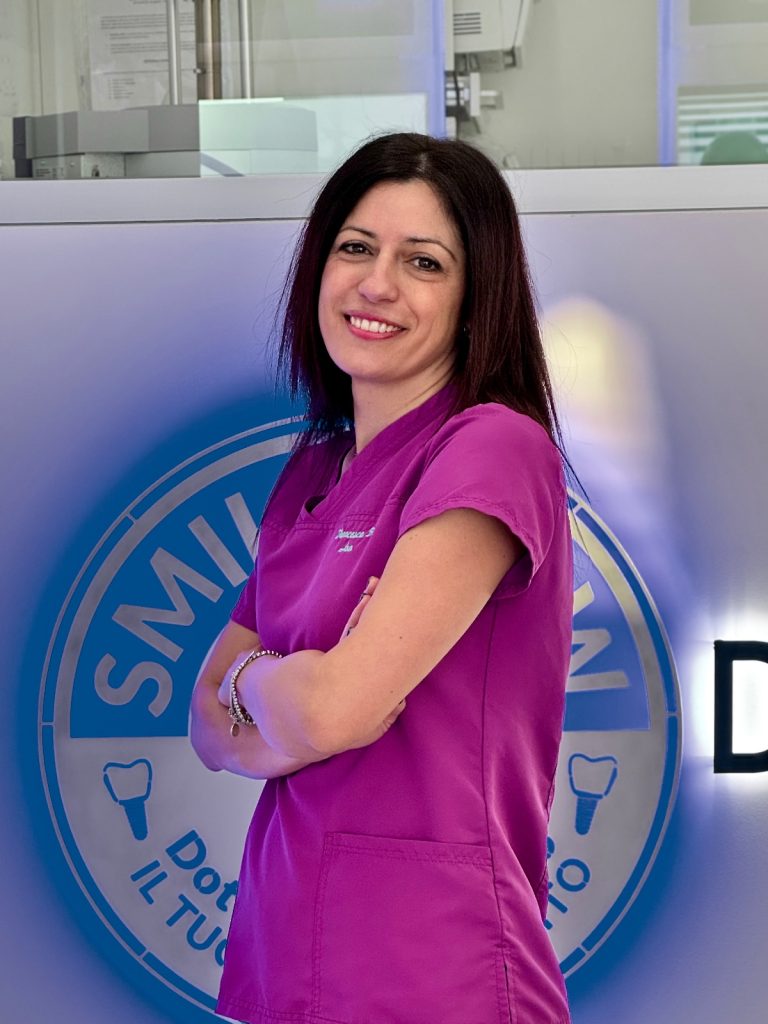 Francesca, 42 anni, è un’assistente di studio odontoiatrico con un’esperienza professionale che risale al 1999. La sua carriera l’ha vista operare in vari studi, prima di stabilirsi definitivamente presso lo studio del Dottor Ciancio a Ronco Briantino, dove è considerata l’assistente storica. Fin dall’inizio, Francesca ha condiviso e supportato il progetto “Smile Now” ideato dal Dottor Ciancio, assumendosi la responsabilità degli ordini all’interno di questo programma. Oltre alla sua dedizione professionale, Francesca nutre un profondo amore per la sua famiglia e per il suo cane, Trilly, che rappresentano il suo hobby preferito e una fonte di
